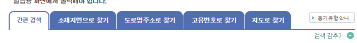 여기서는 '간편 검색'을 이용하는 방법을 기준으로 이야기를 이어가도록 합니다. 간편 검색에서는 '부동산구분, 시/도, 등기기록상태, 주소'를 통해 물건을 검색할 수 있습니다.