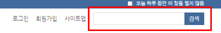 홈페이지 상단에 있는 검색 기능의 위치를 보여주는 참고 예시 사진입니다.