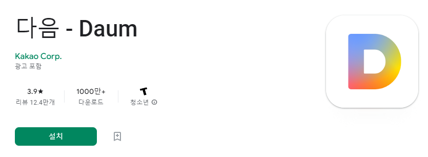먼저, 다음 앱을 설치합니다. 다음 포털을 이용해 일반적인 검색을 하는 방법으로는 웹브라우저 어플을 이용할 수 있습니다. 하지만, 꽃검색 기능은 다음 앱에서만 사용할 수 있습니다. 구글 플레이 스토어를 통해 다음앱을 다운로드 및 설치할 수 있습니다.