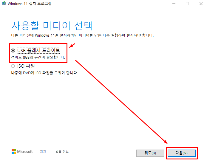 해당 과정을 진행할 때는 usb가 연결되어 있어야 합니다. 또한, usb 메모리의 경우 8gb이상의 여유공간이 있어야 합니다. 위 과정을 거치면 윈도우 11 usb 부팅 디스크를 만들 수 있습니다.