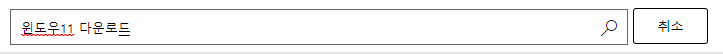 검색 기능을 이용해 '윈도우 11 다운로드'를 검색합니다. 메인 화면 상단에 있는 돋보기 아이콘을 선택하면 검색 기능이 활성화 됩니다.